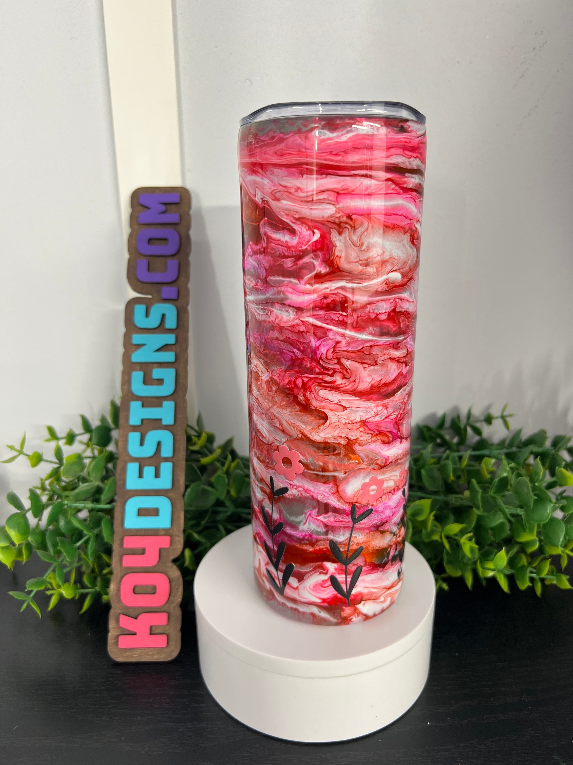 20oz Skinny Tumbler - pink ink swirl with “Always Be Kind” w/ flowers decal - WHITLEY CUP
